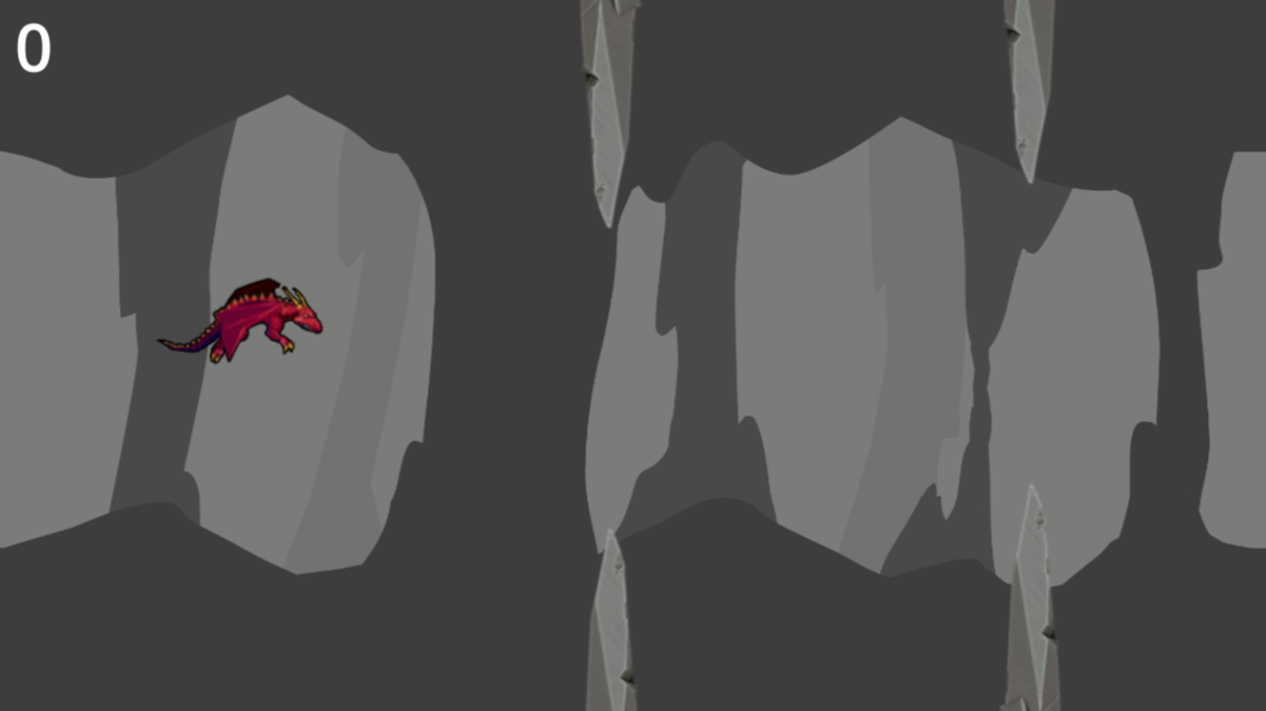 My first ever game: a Flappy Bird copy but dragon themed. You play as a dragon trying to leave its cave while dodging cave spikes.